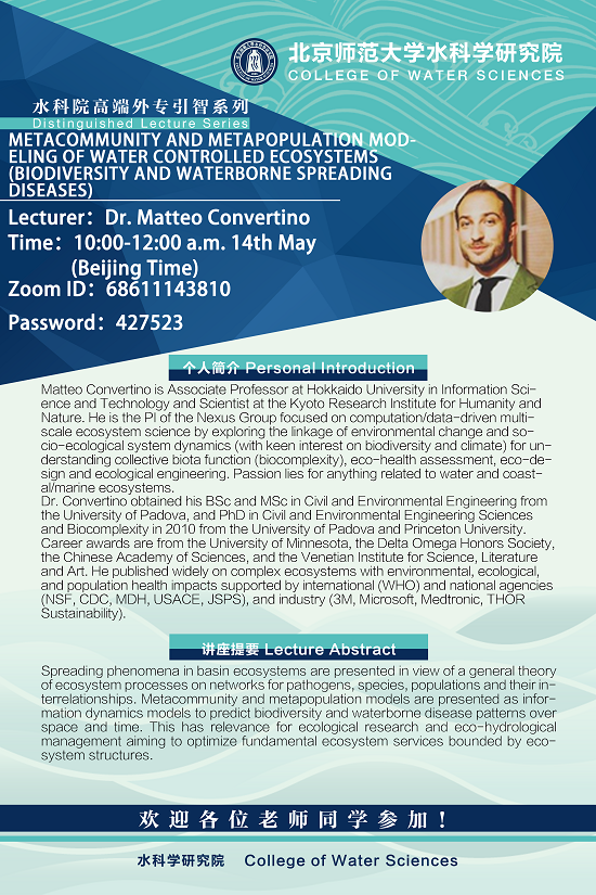 Metacommunity and Metapopulation Modeling of Water Controlled Ecosystems (Biodiversity and Waterborne Spreading Diseases)