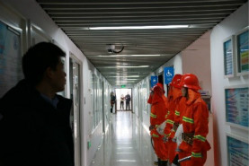 上午十点,校保卫处吕刚老师首先向学院师生讲解消防安全知识。吕老师详细地介绍了当前高校的消防安全形势,并向同学们展示了学院消防设施的位置与用途,特别是报警按钮的使用。吕老师还介绍了遇到火灾时应使用的逃生技巧。随着学院老师按下报警按钮,警报声立刻响起,楼内播放消防疏散广播,学院师生安全有序地按照既定路线分两路进行逃生演习。疏散逃生演习完毕后,保卫处负责老师又现场介绍了灭火器、消防栓等多种消防器材的使用方法,并指导师生体验互动。