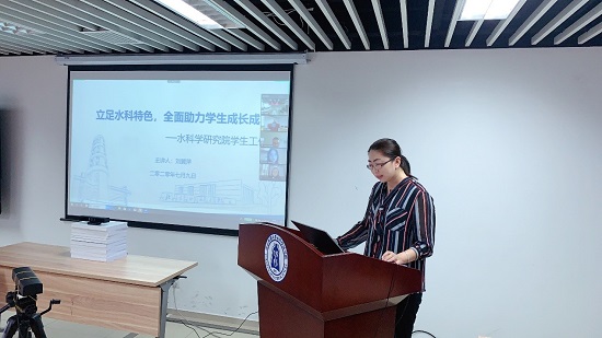 7月9日下午,由潘成忠副院长主持,刘冀萍副书记对学院丰富多彩的学生活动进行了介绍,徐宗学主任对城市水循环与海绵城市技术北京市重点实验室进行了介绍,王金生主任对教育部地下水污染控制与修复工程研究中心进行了介绍。随后开展了云参观实验基地活动,未来科学城管委会阚茜工程师和北京市水科学技术研究院于磊高工就海绵城市未来科学城实验基地进行了视频介绍和沙盘讲解,岳卫峰所长、翟远征副教授、通州基地王树芳副主任在工程中心通州基地给同学们带来了一场云参观试验基地的体验。