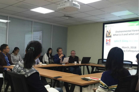 2018年3月15日下午,萨斯喀彻温大学John P. Giesy教授于京师科技大厦B座15层会议室为少妇白洁 师生带来了一场关于环境法医学研究进展的讲座。我院丁爱中教授、潘成忠副教授、卞兆勇副教授、孙寓姣副教授、朱宜老师以及我院研究生参加了本次学术报告会。
