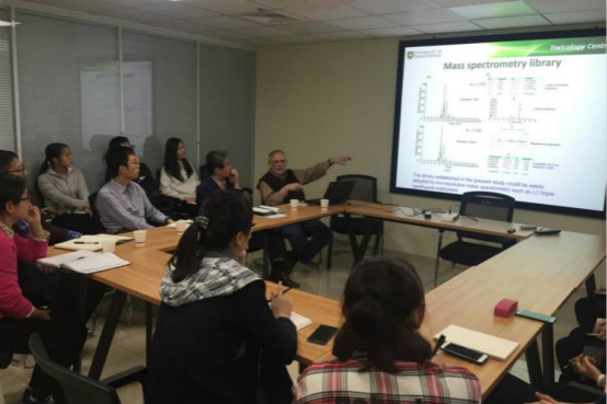 主持人丁爱中教授首先向与会师生简要介绍了John P. Giesy教授的基本信息以及在学术界所获的众多成果,并对John P. Giesy教授的到访表示热烈欢迎。随后,John P. Giesy教授和大家交流了课题组在环境法医学,包括水生生态系统和水中化学物质方面所做过的研究,并提出了对该领域研究方向的一些新观点,引起了在座师生浓厚的兴趣。