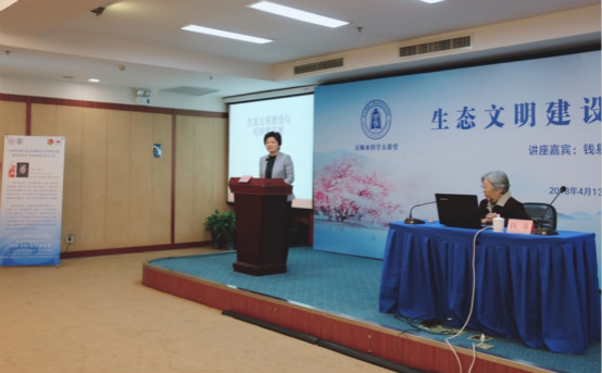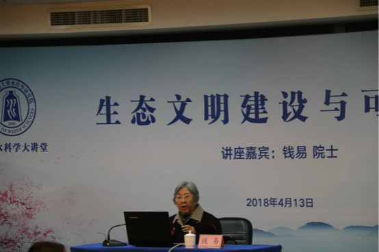 郝芳华副校长首先向各位师生介绍了钱易院士的基本情况,并对钱易院士的到来表示热烈欢迎。中国工程院院士、清华大学环境学教授钱易是中国工程院首批院士,也是清华大学首位女院士,多年来坚持传播生态文明与绿色发展,为我国的环境事业做出了卓越的贡献。随后,钱易先生为来自各学院部系及校外的150余名师生做了题为“生态文明建设与可持续发展”的报告。