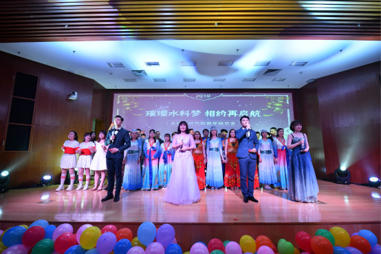 伴随着暖意洋洋的新年祝福视频和激情四射的开场舞《我的未来式》,联欢晚会正式拉开了序幕。晚会伊始,章四龙院长、郝芳华副校长和刘昌明院士分别为大家致新年贺词。他们都对水科院在2018年的工作成果给予了充分肯定,站在现实对水科院的未来进行了美好展望,并在致辞的最后鼓励全体师生继续努力,为水科院的“璀璨”再“启航”!