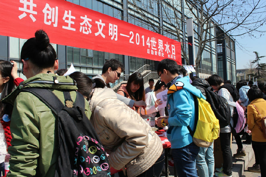 此次活动吸引了一大批师生的广泛参与,大家纷纷在印有"不要让我们的眼泪成为地球上最后一滴水”的横幅上签名留念,表达自己对水资源保护的良好心愿与祝福。此外,师生们还积极参加有奖竞答活动。值得一提的是,本次答题形式采用与我院微信公众平台相结合的方式进行,通过关注推送的方式随机产生题目,参与答题的同学们纷纷表示这种方式新颖独特,紧跟时代发展,让人从细微处感受到科技的进步。大家通过回答一系列与水资源保护相关的问题,进一步加深了对世界水资源形势与现状的了解。整个活动高潮迭起,处处洋溢着浓厚的节水氛围,使节水、惜水、爱水的观念深入人心。