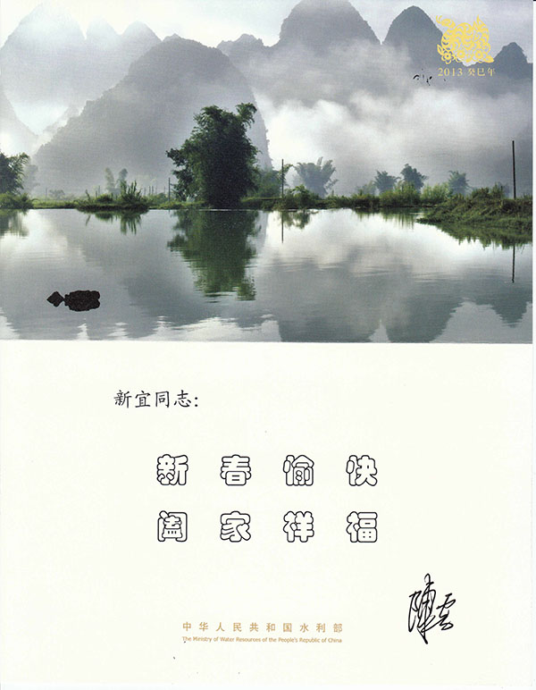 水利部陈雷部长给我院许院长寄送贺卡贺新年