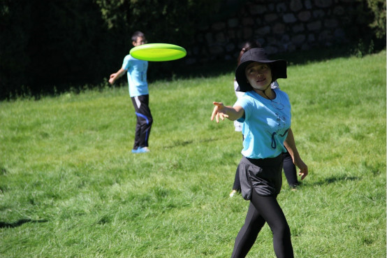 接下来进行了本次素质拓展的重头戏--飞盘比赛,各小组展开了激烈的竞争,最终决出胜负。在游戏过程中需要慢速跑动, 所以能锻炼腿部。由于经常跑跑停停、 变换方向,所以身体的敏捷度和平衡力也可以得到增强。在上午比赛前的联系中,同学们便开始丢飞盘,由于同学们都是第一次接触此运动,且有不小风力的影响,所以丢的丢偏,接的接不到。大家想着各种办法互相配合帮助,相互鼓励,在经历几次失败之后,大家就能很平稳的接住飞盘。