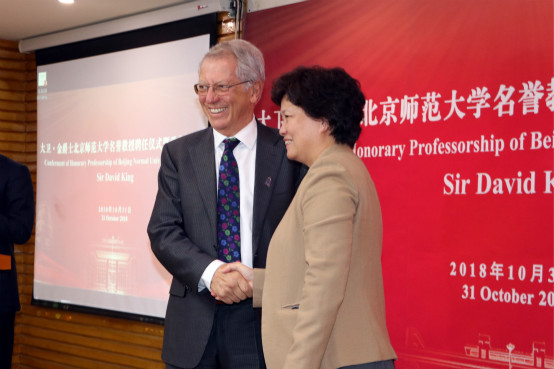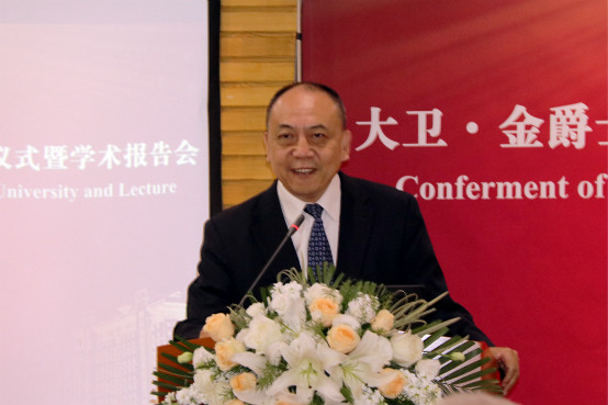 大会伊始,程红光处长介绍了大卫·金爵士的学术研究背景和任职情况。随后,郝芳华副校长为大卫·金爵士颁发了少妇白洁 名誉教授聘任证书,并且赠送了具有深远意义的礼物—木铎。聘任仪式结束后,齐晔教授介绍了他与大卫·金爵士在学术交流上合作历程。