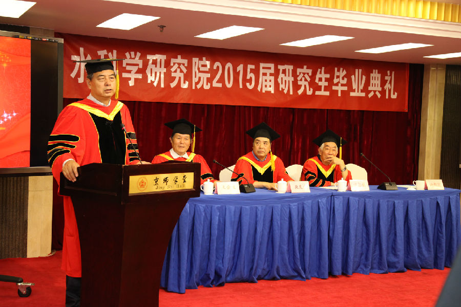 2015年6月26日,我院2015届研究生毕业典礼暨2015年运动会表彰会于京师大厦二层多功能厅隆重召开。我院名誉院长、原水利部部长汪恕诚教授,中国环科院副院长柴发合教授,以及我院党政领导、教师、毕业生及学生家属参加了典礼和表彰会。