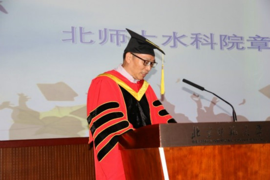 典礼上,刘昌明院士为毕业生深情寄语,他展望了水科学专业的发展前景并对毕业生们寄予厚望。最后,2019届毕业生为大家献上合唱《不说再见》,用精心改编的歌词款款道出三年生活的美好瞬间。典礼在庄严的校歌中结束。